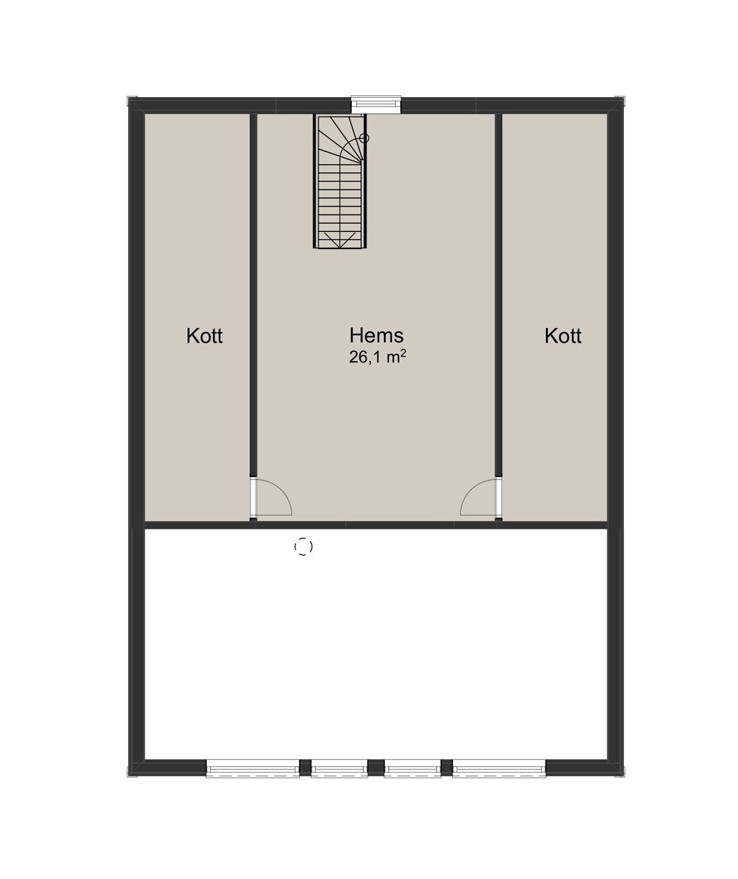 Overbygget inngangsparti skjermer for vær og vind, og leder deg inn i hytten. Du kommer først inn i vindfanget med muligheter for garderobe og oppheng av klær. Videre kommer du til gangen som gir deg tilgang til hyttens fire soverom, et baderom, en innvendig bod/garderobe og allrom. Allrommet inneholder stue-/kjøkkenløsning med mønt himling og en flott vindusfasade som skaper et lyst og innbydende rom. Fra gangen har du også tilgang til en hems, som gir rom for flere overnattingsgjester. Her er det også rom for lagring i to romslige kott.