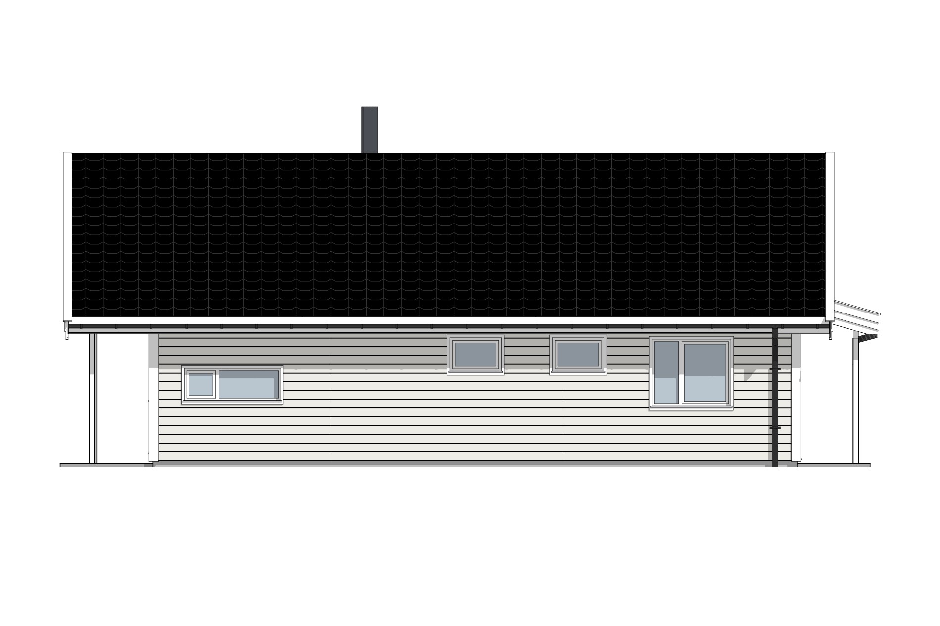 Allrommet har en enestående vegg av vinduer som slipper inn lyset og naturen. Her har du god plass til et stort spisebord og en hyggelig sofakrok ved peisen. En lang kjøkkenbenk gir deg god arbeidsplass for tilbereding av deilige måltider. Taket over allrommet er dratt frem for et overbygd uteområde som du har tilgang til fra stue/kjøkken. Her kan du nyte en kopp kaffe under tak, mens du opplever naturen og stillheten utenfor.